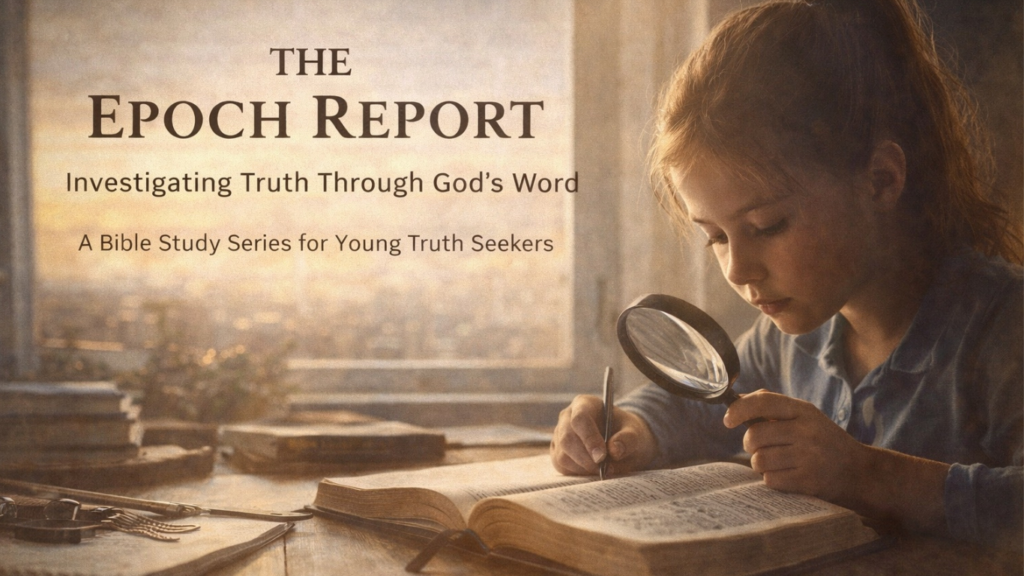 Looking for something engaging , meaningful, and faith-building for your children? Welcome to the Epoch Report, a Bible study adventure where kids become truth sleuths and learn to examine God’s Word with purpose. Children are introduced to Christina Grace, an investigative reporter for The Epoch Report, as she searches Scripture, uncovers truth, and follows evidence God has given us in His Word.